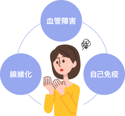 なぜ強皮症になるのか、今のところ根本的な原因はわかっていません。おそらく、強皮症の原因は一つではなく、「