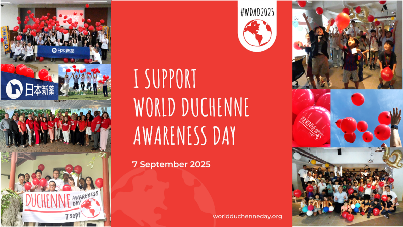毎年9月7日は、World Duchenne Awareness Day(WDAD:世界デュシェンヌ啓発の日)です。この日は、デュシェンヌ型筋ジストロフィー(DMD)やベッカー型筋ジストロフィー(BMD)に対する理解を深め、患者さんやご家族を支援するための啓発活動が世界中で行われます。WDADのシンボルである赤い風船には、「病気を空高く飛ばしてしまいたい」という願いが込められています。