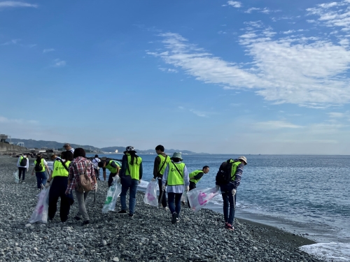 当日は、両社からあわせて約120名が参加し、小田原市の中心部にある「小田原城」から「御幸の浜」までを清掃しました。
