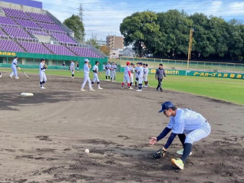 今回の講習会では、技術指導に熱心に耳を傾ける球児たちの姿勢や教わったことをすぐに実践しようと努力する姿が印象的でした。日本新薬硬式野球部員にとっても、基礎の再確認や野球の楽しさをあらためて実感する有意義な講習会となりました。