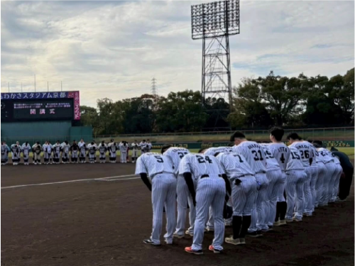 京都府高等学校野球連盟主催による「冬季トレーニング講習会」がわかさスタジアム京都で開催され、日本新薬硬式野球部員が高校球児222名に対して実技指導を行いました。本講習会は、球児の技術向上と意識改革を目的に毎年開催されており、京都府下の高校球児が多く参加しています。